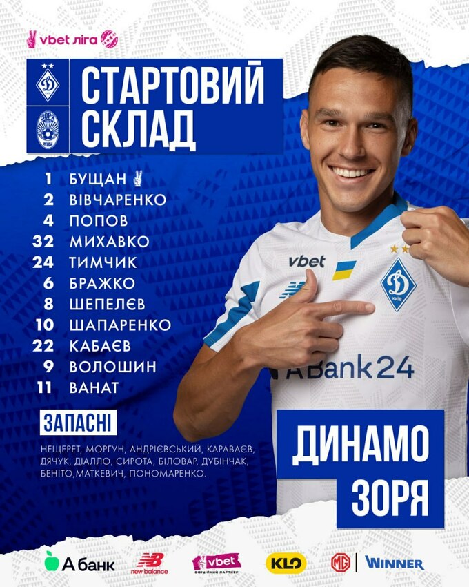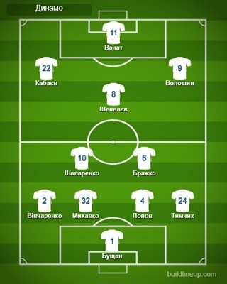 «Динамо»: Бущан – Вівчаренко, Попов, Михавко, Тимчик (Караваєв, 46), Бражко, Шапаренко (Андрієвський, 82), Шепелєв, Кабаєв (Діалло, 89), Волошин, Ванат.