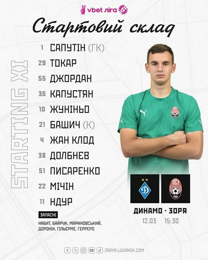У вівторок, 12 березня, відбудеться матч 21-го туру Української Прем'єр-ліги, в якому стосунки з'ясують київське «Динамо» і «Зоря» з Луганська.