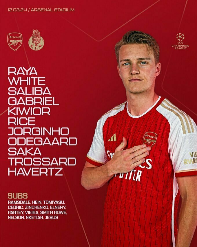 У вівторок, 12 березня, англійський «Арсенал» і португальський «Порту» зустрінуться у другому матчі 1/8 фіналу Ліги чемпіонів. Поєдинок відбудеться на стадіоні «Емірейтс» в Лондоні. Початок призначено на 22:00 за київським часом.