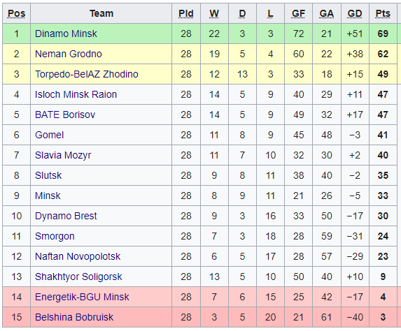- 1. динамо мінськ (69), 2. неман гродно (62), 3. торпедо-бєлаз (49)