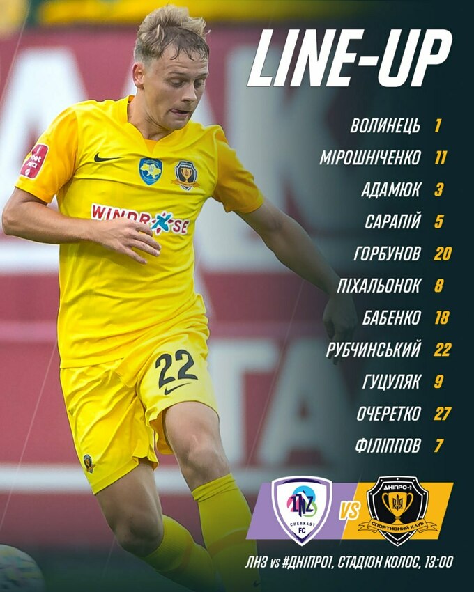 У вівторок, 12-го березня, відбудеться поєдинок 21-го туру Української Прем'єр-ліги, у якому змагатимуться черкаський ЛНЗ і дніпровський «Дніпро-1». Матч відбудеться в с. Ковалівка, на полі стадіону «Колос», початок о 13:00.