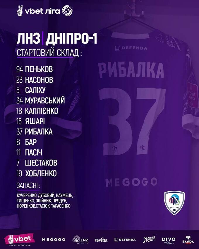 Запасні: Кучеренко, Дубовий, Тищенко, Тарасенко, Стасюк, Норенков.