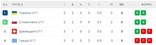 У першому матчі команда Юрія Мороза обіграла Грецію (2:0), а потім взяла гору над Швейцарією (3:0). Словаччина також здобула дві перемоги.