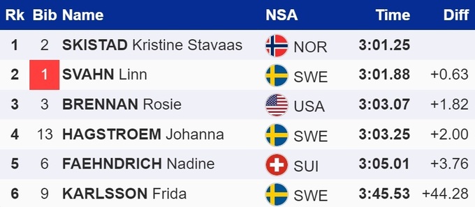 У жінок перемогу також здобула господиня змагань, Крістін Шістад. У фіналі вона випередила шведку Лінн Сван та американку Розі Бреннан.