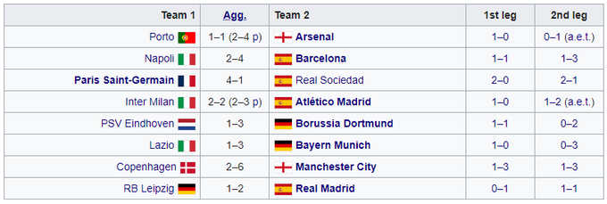 Для визначення переможця у матчі Атлетіко Мадрид та Інтера знадобилася серія пенальті (2:1, пен. 3:2), при цьому господарі поля завдяки голу Мемфіса Депая зуміли відіграти фору в один м'яч після першої гри (0:1).