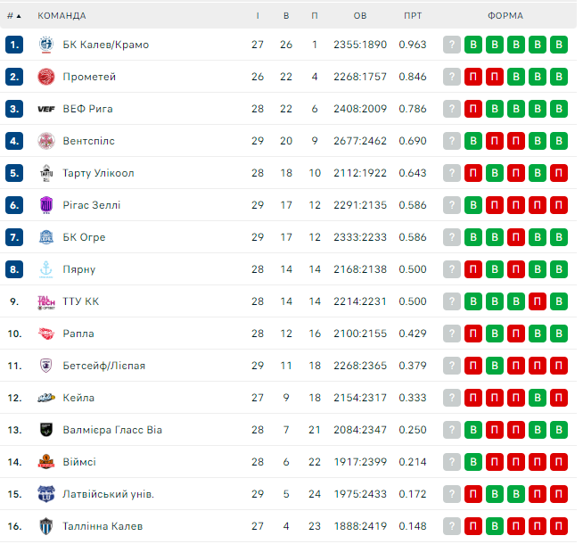 Суперник займає 12 місце з балансом 9–18 і вже не має шансів вийти до плей-оф Латвійсько-Естонської ліги.