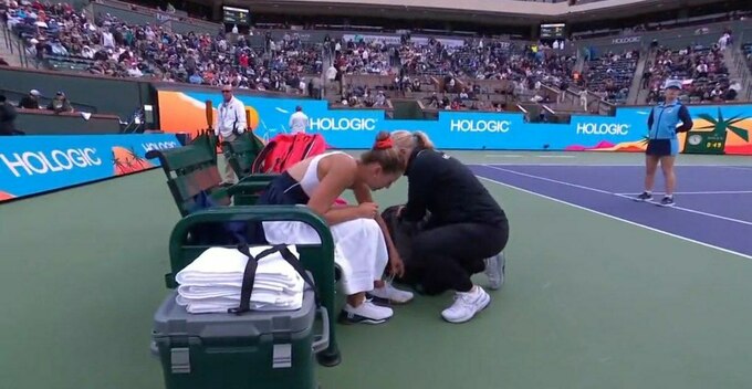 Після третього гейму другого сету Костюк взяла медичний тайм-аут. Судячи з усього, представницю України турбував великий палець на лівій нозі.