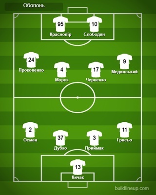 «Оболонь»: Кичак – Грисьо (Лук'янчук, 74), Приймак, Дубко, Осман, Мединський, Черненко (Запорожець, 74), Мороз (Косовський, 46), Слободян (Суханов, 63), Прокопенко, Краснопір (Тарануха, 63).