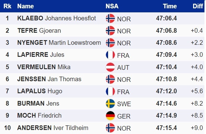 Однак цієї переможної серії Клебо не вистачило для перемоги в загальному заліку Кубка світу: титул дістався його партнеру по збірній Норвегії Харальду Остбергу Амундсену, який сьогодні фінішував лише 17-м.