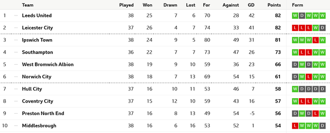 Ще наприкінці грудня Лідс відставав від Лестера на 17 очок, але зробив великий камбек у битві за прямий вихід до АПЛ (потрібно фінішувати у топ-2).
