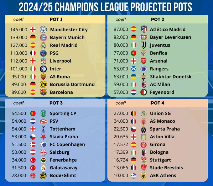 Ліга чемпіонів 2024/25. Прогнозовані кошики посіву