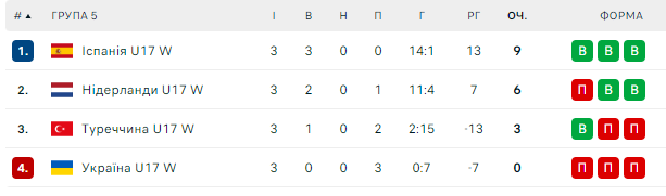 Таким чином, збірна України WU-17 посіла останнє місце в групі й вибула в Лігу В наступного циклу, Євро-2025.