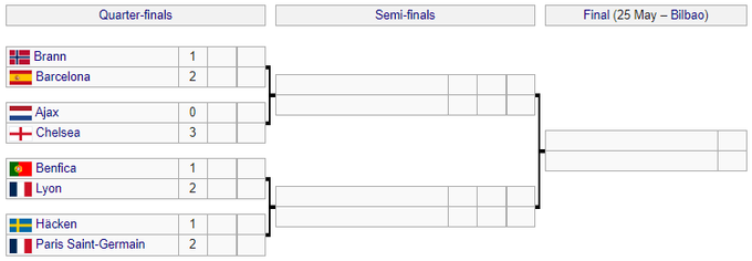 Днем раніше Челсі виграв у гостях у Аякса (3:0), а Ліон на виїзді завдав поразки португальській Бенфікі (2:1).