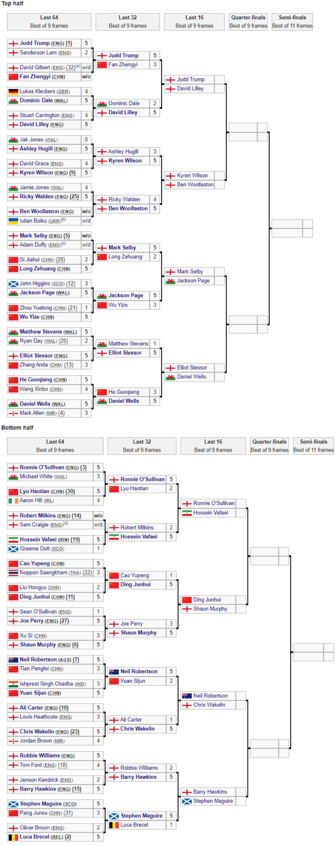 - Марк Селбі (Англія) – Джексон Пейдж (Уельс)