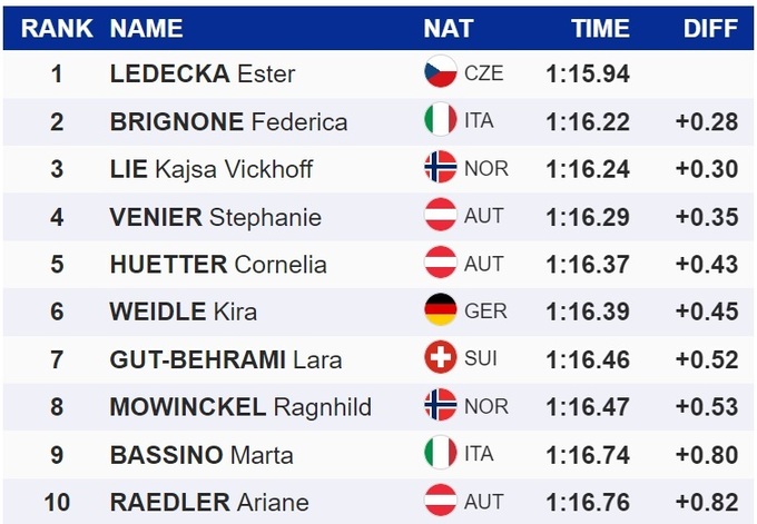 Чеська гірськолижниця Естер Ледецка виграла супергігант на фіналі сезону в австрійському Заальбах-Хінтерглеммі. Вона випередила італійку Федеріку Бріньоне і норвежку Кайсу Вікхофф Лі.