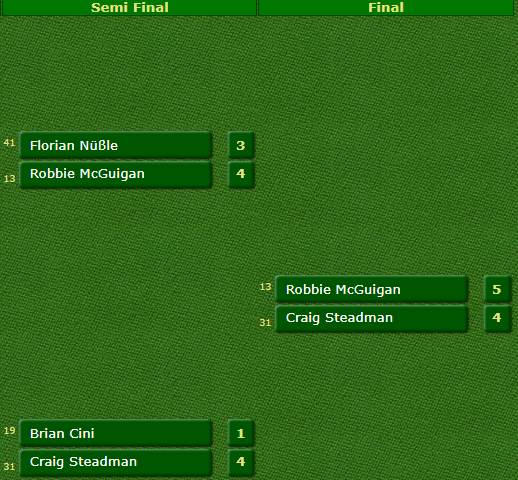 - Роббі Макгіган (Північна Ірландія) – Крейг Стедман (Англія) – 5:4