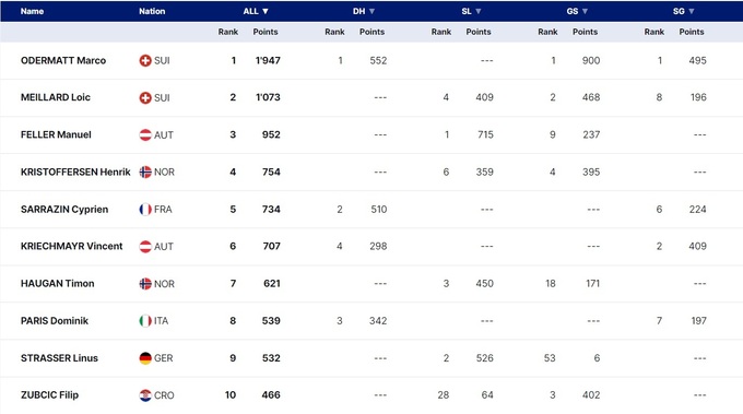 Бенефіс Швейцарії в супергіганті, чотири глобуси для Одерматта
