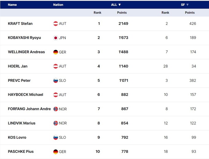 Штефан Крафт у Планіці не вражав – лише сьоме і четверте місця у двох особистих турнірах, як підсумок – упущений МКГ з польотів. Зазначимо, що Хубер, який у підсумку завоював трофей, ще в січні навіть не відібрався до складу збірної Австрії на домашній чемпіонат світу з польотів! До слова, аналогічна ситуація трапилася два роки тому з Жигою Єларом. Хубер за останні два місяці добився колосального прогресу і видав свій найкращий сезон у кар'єрі за набраними очками в Кубку світу.