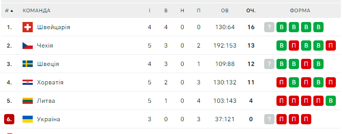 Після трьох матчів Україна є аутсайдером і перебуває під загрозою вильоту до третього дивізіону (Conference).