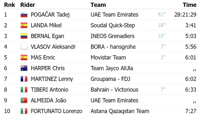 Словенський велогонщик команди «UAE Emirates» Тадей Погачар став переможцем престижної багатоденки Світового туру Тур Каталонії. Компанію на подіумі загального заліку йому склали іспанець Мікель Ланда з «Soudal Quick Step» і Еган Берналь з «Ineos Grenadiers».