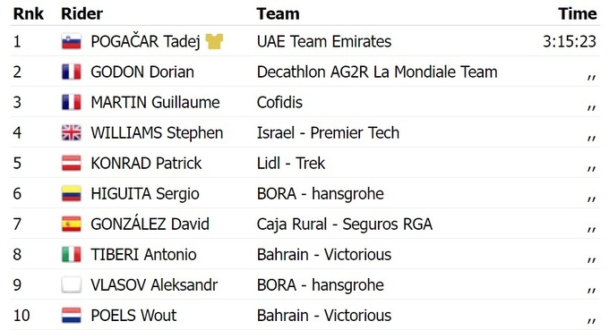 Саме Погачар і виграв заключний етап Туру Каталонії до Барселони, випередивши у фінішному спринті французів Доріана Годона з «Ag2r» і Гійома Мартена з «Cofidis». Це четверта перемога Погачара на нинішньому Турі Каталонії.