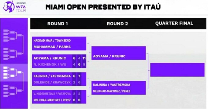 Раніше з парного турніру в Маямі вилетіла Людмила Кіченок, яка разом із Альоною Остапенко на старті поступилася американкам Софії Кенін та Бетані Маттек-Сандс.