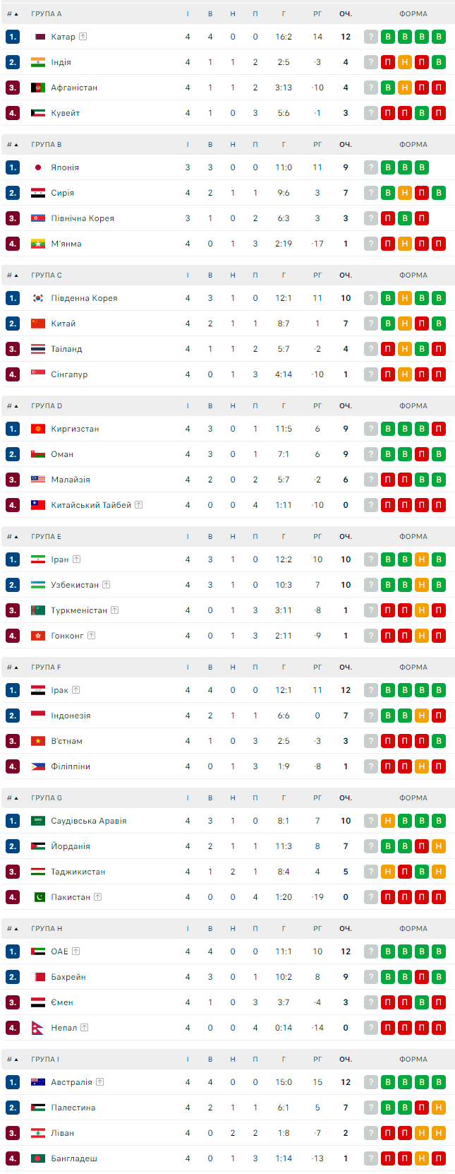 Вже точно продовжать боротьбу за путівки на ЧС-2026 такі 6 команд: Катар, Іран, Узбекистан, Ірак, ОАЕ, Австралія.