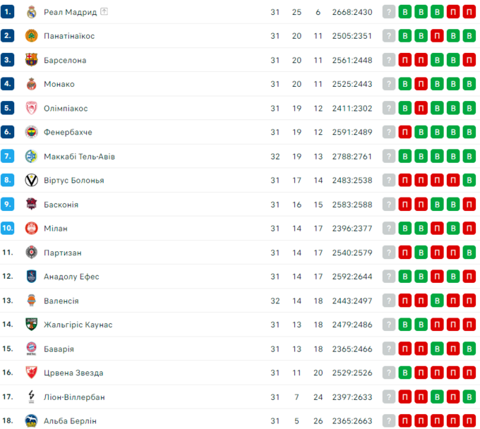 Євроліга. Маккабі здобув шосту перемогу поспіль