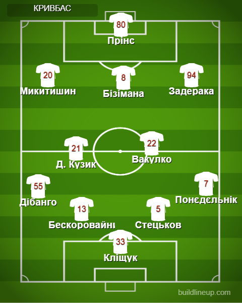 «Кривбас»: Кліщук - Понєдєльнік, Бескоровайний, Стецьков, Дібанго - Кузик (По, 75), Вакулко (Іліч, 46) - Микитишин (Луньов, 56), Бізімана, Задерака (Соса, 46) - Прінс Аду (Хомченовський, 82)