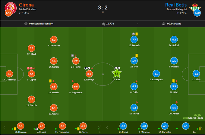 Оцінки WhoScored за матч Жирона – Бетіс – 3:2