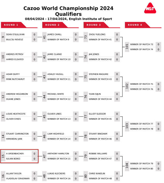 Український снукерист Юліан Бойко дізнався суперника у кваліфікації чемпіонату світу 2024, що пройде з 8 по 17 квітня в Англійському інституті спорту у Шеффілді.
