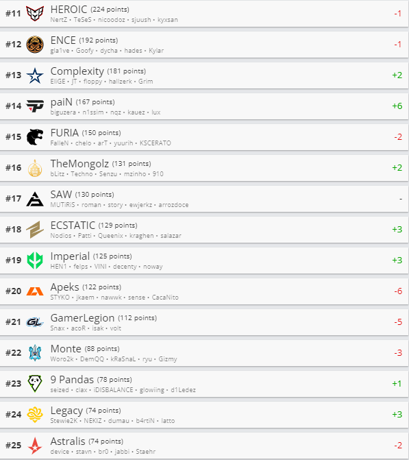 Інша топова українська команда Monte знову втратила позиції. Тепер Monte посідають 22-ге місце в рейтингу HLTV. Наприкінці 2023 року вони входили до топ-10.