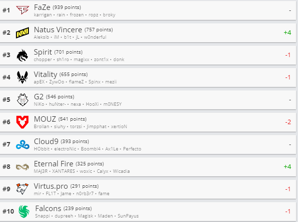 Рейтинг HLTV. NAVI піднялися на друге місце, Monte випали з топ-20