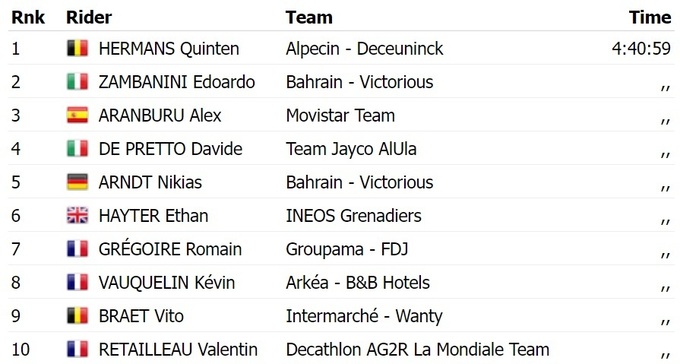 Бельгійський велогонщик команди «Alpecin Deceuninck» Кінтен Херманс став переможцем третього етапу престижної іспанської багатоденки Світового туру Тур Країни Басків. У фінішним спринті він випередив італійця Едоардо Дзамбаніні з «Bahrain Victoriuos» та іспанця Алекса Аранбуру з «Movistar».