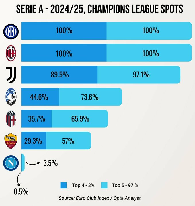 «Інтер» набрав 79 очок за 8 турів до завершення чемпіонату Італії і став недосяжним для «Роми» (52 пункти), яке йде на п'ятому місці в таблиці. Індзагі та компанія забезпечили собі місце у першій четвірці Серії A за підсумками сезону, яке дає право виступити в основному турнірі Ліги чемпіонів 2024/25 (4 найкращі команди вийдуть у головний єврокубковий турнір).