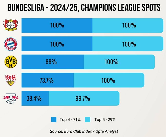 За 7 турів до кінця відрив «Байєра» від п'ятого місця, на якому йде «РБ Лейпциг», становить 23 очки. Леверкузенці очолюють таблицю Бундесліги, випереджаючи «Баварію» на 13 очок. У Лігу чемпіонів 2024/25 вийдуть 4 найкращі команди Бундесліги 2023/24.