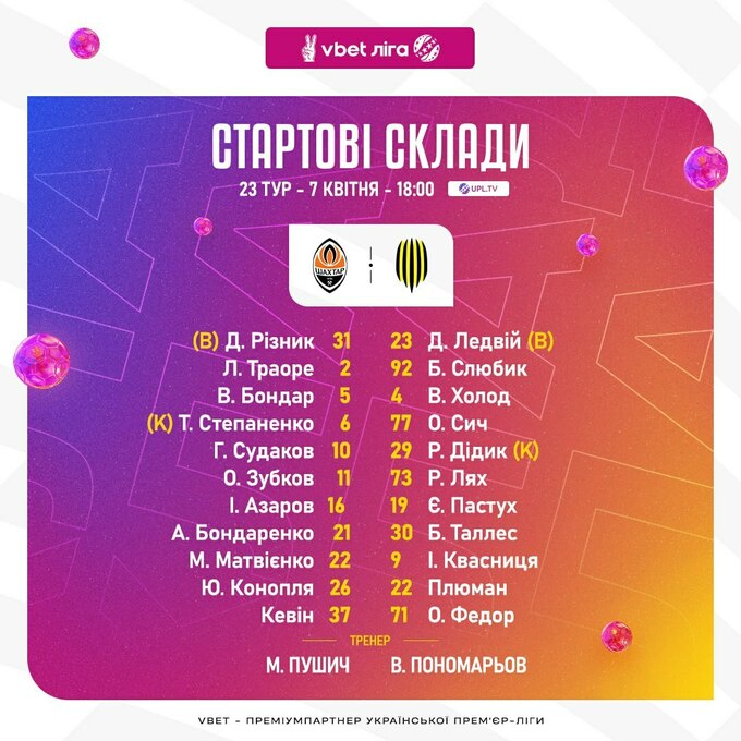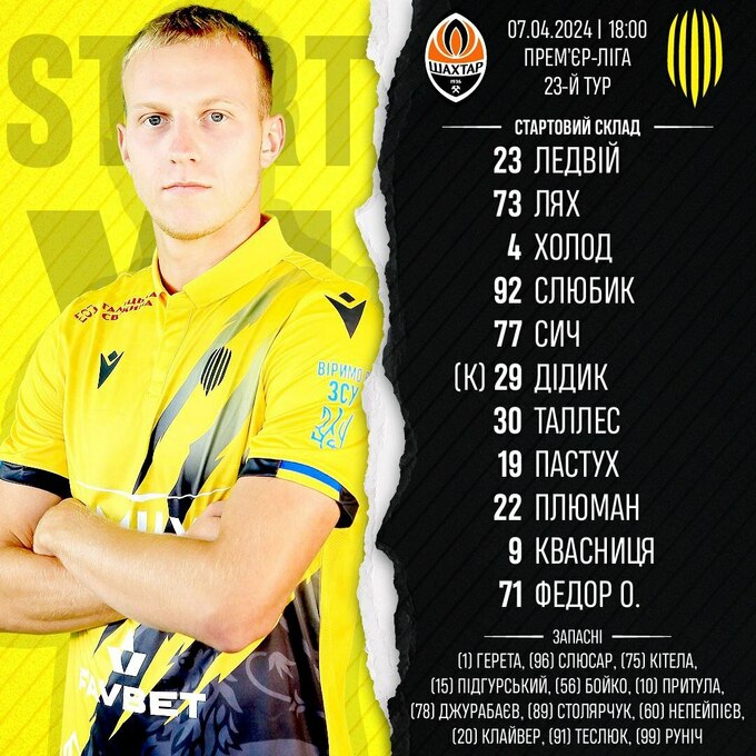 Запасні: Герета, Слюсар, Кітела, Бойко, Столярчук, Непейпієв, Підгурський.