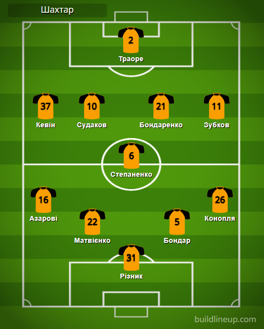 «Шахтар»: Різник – Азарові, Матвієнко, Бондар, Конопля – Степаненко (Назарина, 87) – Кевін (Егіналду, 46, Швед, 58), Судаков, Бондаренко, Зубков (Марлон, 77) – Траоре (Сікан, 57).