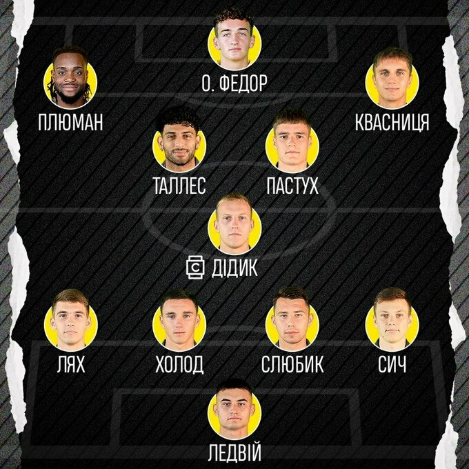 Попередження: Кевін, 25 – Сич, 11, Дідик, 30, Таллес, 72