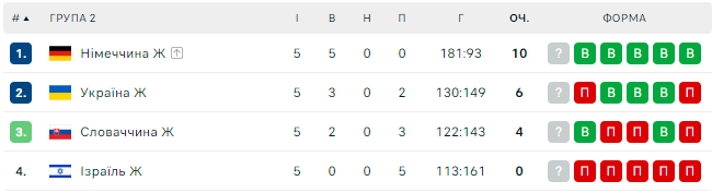 Збірна України перемогла Словаччину в першому колі (25:20). Щоб виграти у словачок боротьбу за друге місце, українську команду в матчі 7 квітня влаштують перемога, нічия, або поразка з різницею не більше ніж у 5 голів.