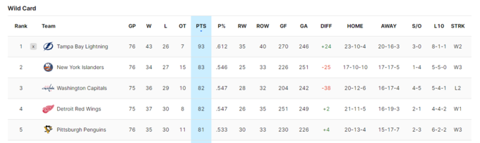 Кепіталз програли шостий поспіль матч, але з 83 пунктами відстають від Детройта на одне очко. Ці ж 83 очки має і Філадельфія.