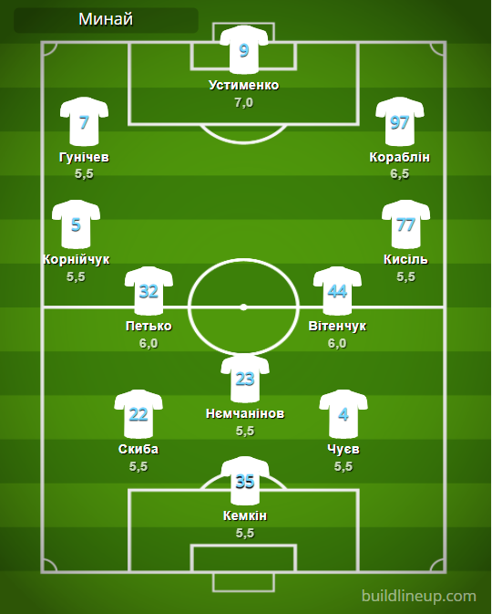 «Минай» (заміни): Ременяк – 6,0, Вакула – 6,5, Піддубний – 6,0, Семотюк – 6,5, Дмитрук – б/о.