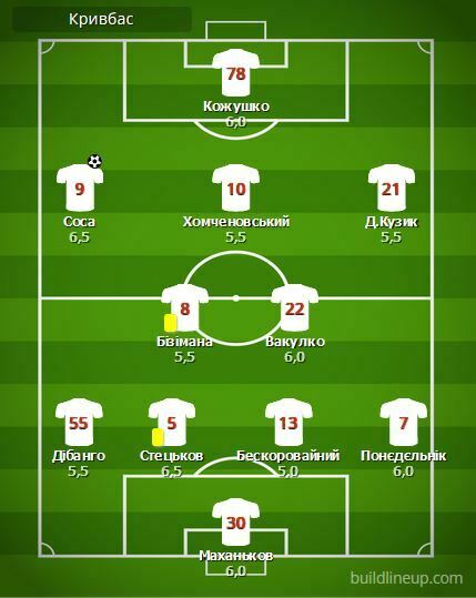 Заміни «Кривбаса»: Микитишин – 5,5; Задерака – 6,0; По – 5,5; Луньов – 5,5; Твердохліб – б/о.