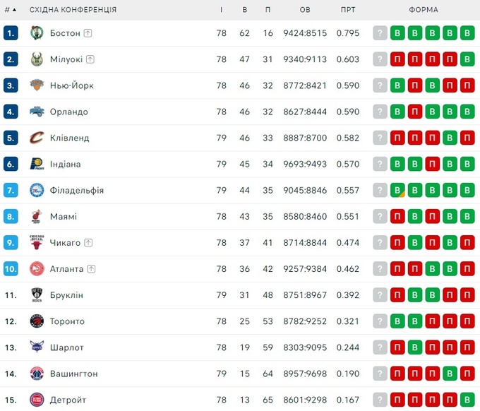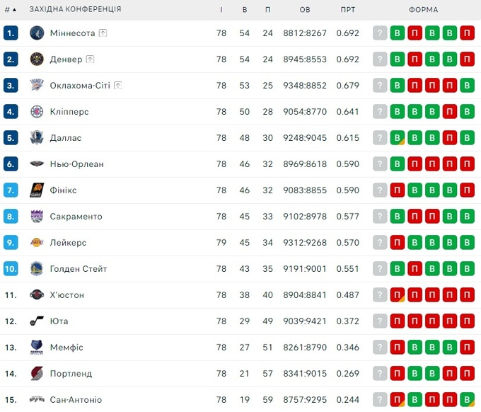 Наразі тільки п'ять клубів забезпечили собі путівки в плей-офф. Це «Міннесота», «Денвер» і «Оклахома-Сіті» із Західної конференції та «Бостон», кольори якого захищає українець Святослав Михайлюк, з «Мілуокі» зі Східної конференції.