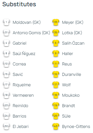 Боруссія Д: Кобель, Рюерсон, Хуммельс, Шлоттербек, Матсен, Забітцер, Емре Джан, Нмеча, Санчо, Адеємі, Фуллкруг.