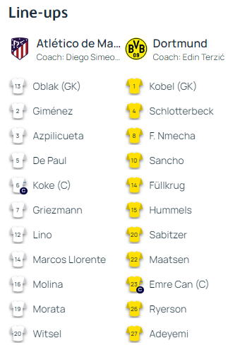 Стали відомі стартові склади на матч ЛЧ між Атлетіко М та Боруссією Д