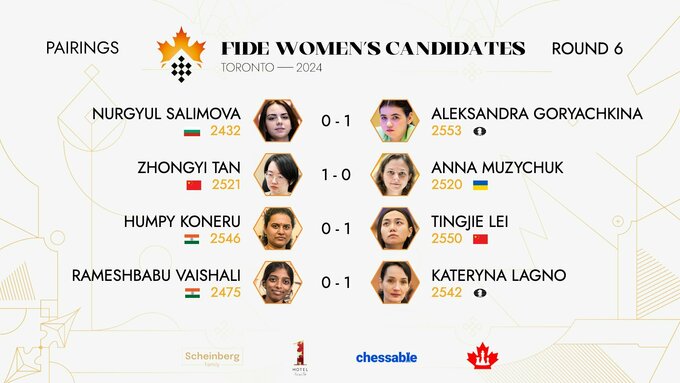 - Рамешбабу Вайшалі (Індія) – Єкатерина Лагно (FIDE) – 0:1