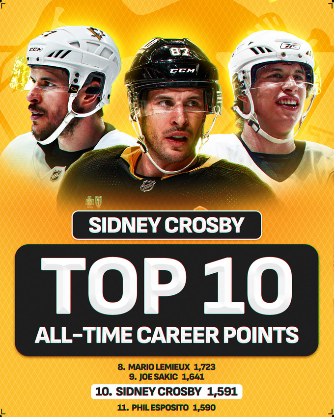 У цьому ж матчі Кросбі набрав свій 1591 пункт і увійшов до топ-10 найкращих бомбардирів в історії НХЛ.