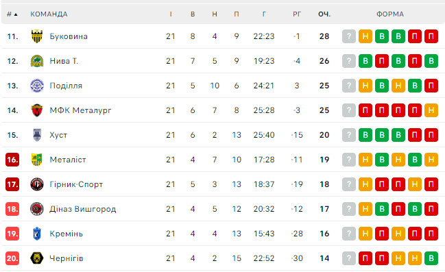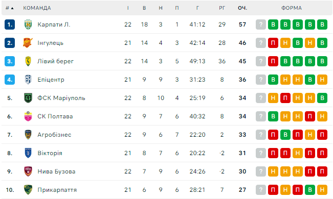 Турнірна таблиця