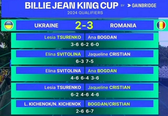 13 квітня жіноча збірна України з тенісу завершила матч кваліфікації до фіналу Кубка Біллі Джин Кінг проти команди Румунії.